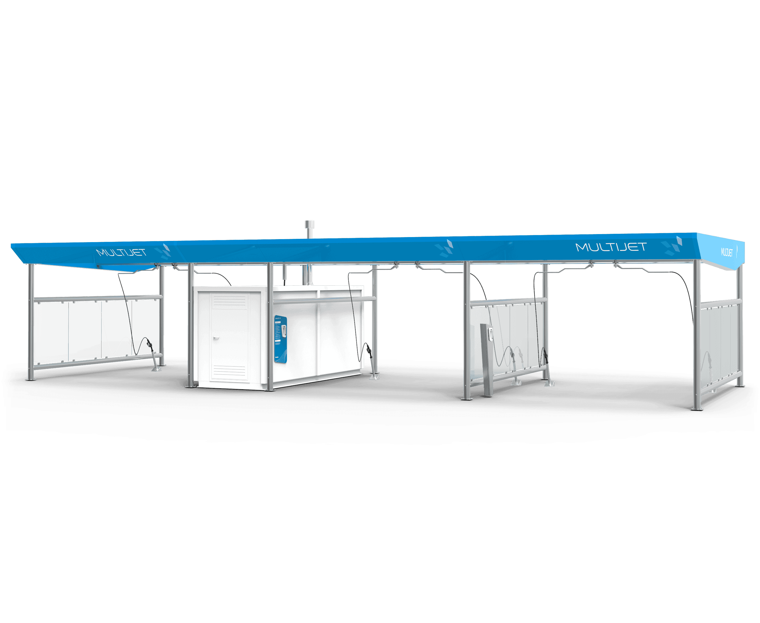 High-pressure self-service washing centre for motor vehicles and bicycles, extremely robust and reliable. Designed for greater user autonomy, ensures the best quality and safety standards, through a simple and intuitive use. Features 7 washing programmes chosen through a single command panel. Uses the best chemicals on the market.
