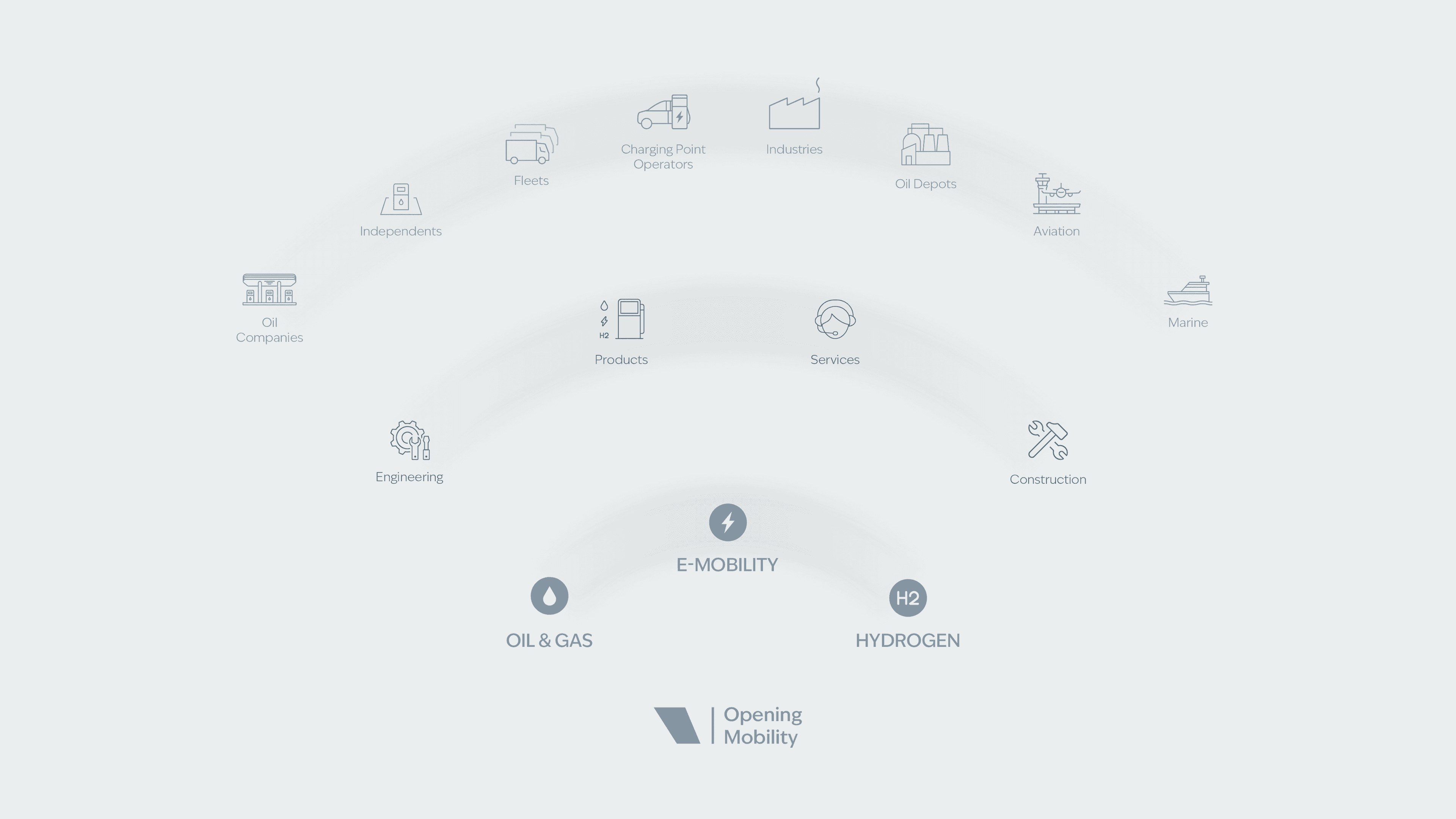 Our ecosystem is a dynamic and integrated network centered around three core mobility sectors: Oil and Gas, Electric, and Hydrogen Mobility. These areas drive our innovation and commitment to an increasingly connected and mobile world. Our cross-functional activities include essential components such as Products, Services, Construction, and Engineering, providing a comprehensive approach to delivering value across all sectors.