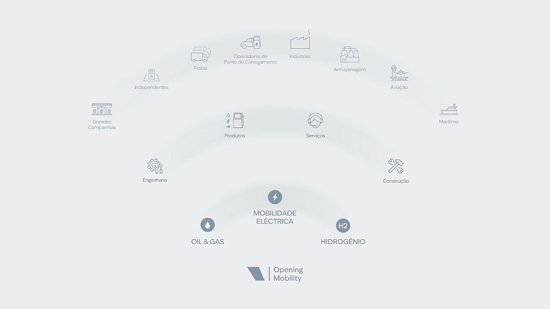 O nosso ecossistema é uma rede dinâmica e integrada centrada em três sectores fundamentais da mobilidade: Petróleo e Gás, Mobilidade Eléctrica e Hidrogénio. Estas áreas impulsionam a nossa inovação e o nosso compromisso com um mundo cada vez mais conectado e móvel. As nossas actividades multifuncionais incluem componentes essenciais como Produtos, Serviços, Construção e Engenharia, proporcionando uma abordagem abrangente para fornecer valor em todos os sectores.