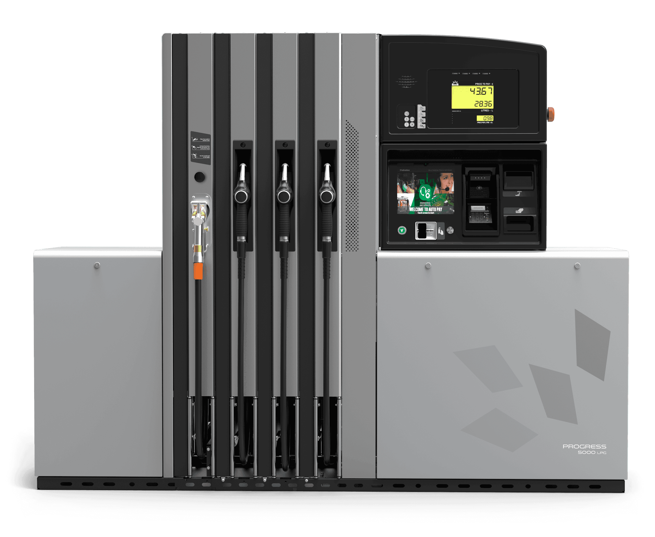 Os dispensadores de GPL Progress têm um design elegante e compacto, acrescentando uma estética minimalista e um charme extra ao posto de abastecimento. A gama inclui opções de ilha e de orientação para a via, com opções independentes e combinadas disponíveis para satisfazer todas as necessidades do cliente. Todos os modelos permitem um acesso fácil a todas as peças, garantindo uma fácil manutenção e capacidade de atualização.