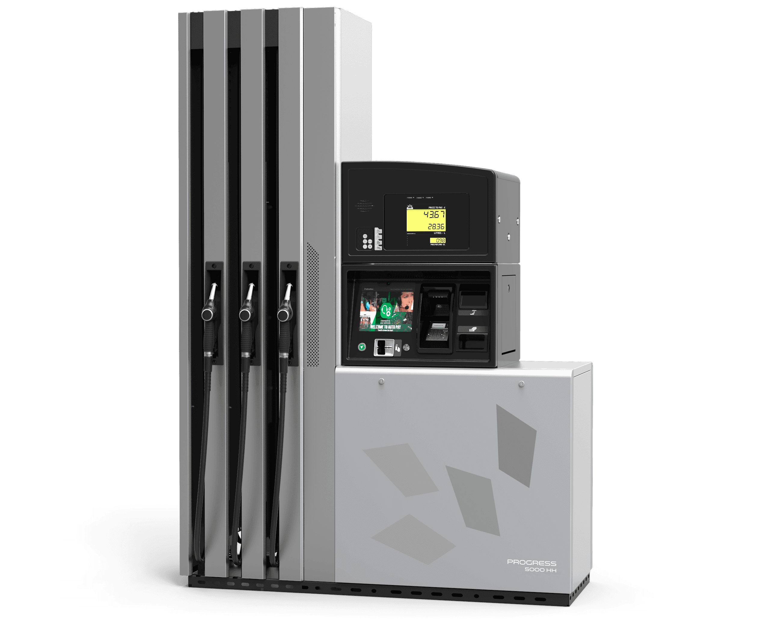 Hasta cuatro surtidores de combustible, ocho mangueras y un caudal máximo de 130 l/min. También están disponibles sistemas multimedia y de pago. Una gran elección para quienes privilegian un gran diseño, fiabilidad, rendimiento y bajo coste de mantenimiento.